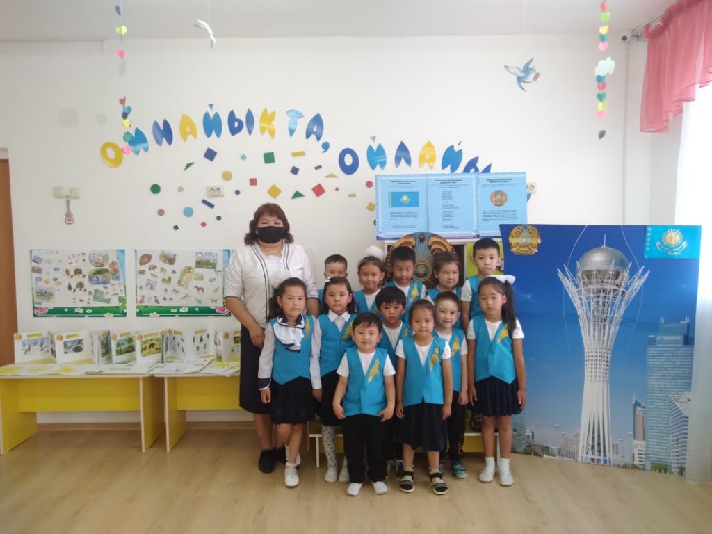 Біздің бөбекжайымызда мерекеге орай, кішкентай бүлдіршіндерге "Өз еліннің рәміздерін білесің бе?", " Біздің еліміздің Тәуелсіздік нышандары!" тақырыпта барлық топтарға арналған іс-шаралар өткізілді. Бұл шаралардың мақсаты, мектепке дейінгі жастағы балаларға Қазақстан Республикасының мемлекеттік рәміздерімен таныстыруды жалғастыру, танымдылық қызығушылықтарын арттыру, мемлекеттік рәміздер туралы білімдерін кеңейту, Қазақстан Республикасының мемлекеттік рәміздерін, тарихын, салт-дәстүрін құрметтеуге, қастерлеуге тәрбиелеу,Отанына деген сүйіспеншілігін, патриоттық сезімдерін ояту болды.